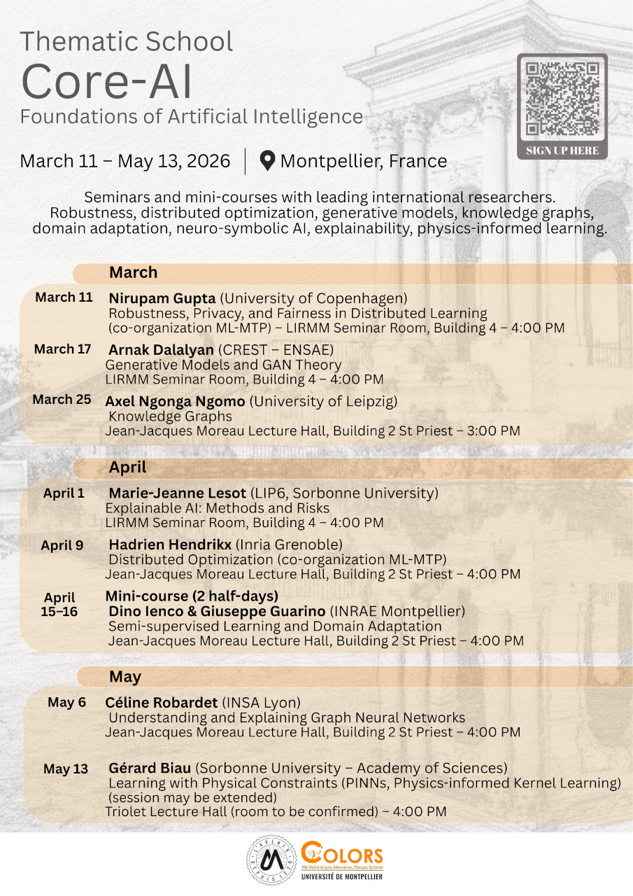 Public : doctorants, post-doctorants, ingénieurs, chercheurs, enseignants-chercheurs, ainsi qu’à toute personne souhaitant renforcer sa compréhension des fondements de l’IA.