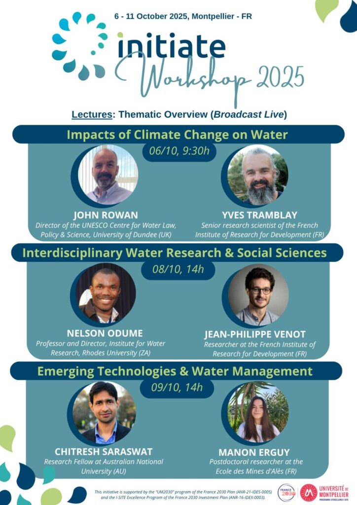 INITIATE (The International, Intercultural and Interdisciplinary Network of PhD Candidates working on water-related issues) organise à Montpellier son workshop annuel, réunissant des experts ainsi que des doctorants des cohortes 2024 et 2025 issus de ses 13 universités partenaires.