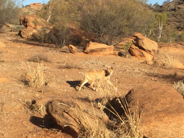 Les jours passent paisiblement et se ressemblent. Ce n’est que le dernier après-midi qui nous réserve une surprise : notre première (et dernière) rencontre avec le dingo, ce fameux chien sauvage icône du bush australien. Nous sommes au dernier affleurement, au cœur du sous-dôme d’Inkamulla. Nous discutons vivement sur la signification de structures plissées et essayons d’échantillonner soigneusement au burin et marteau des lamelles de roches présentant des plis importants pour la compréhension de la mise en place de cette structure géologique. La lumière du soir rend encore plus intense le rouge-ocre de la roche, de ses reliefs arrondis, accueillants et intemporels.
