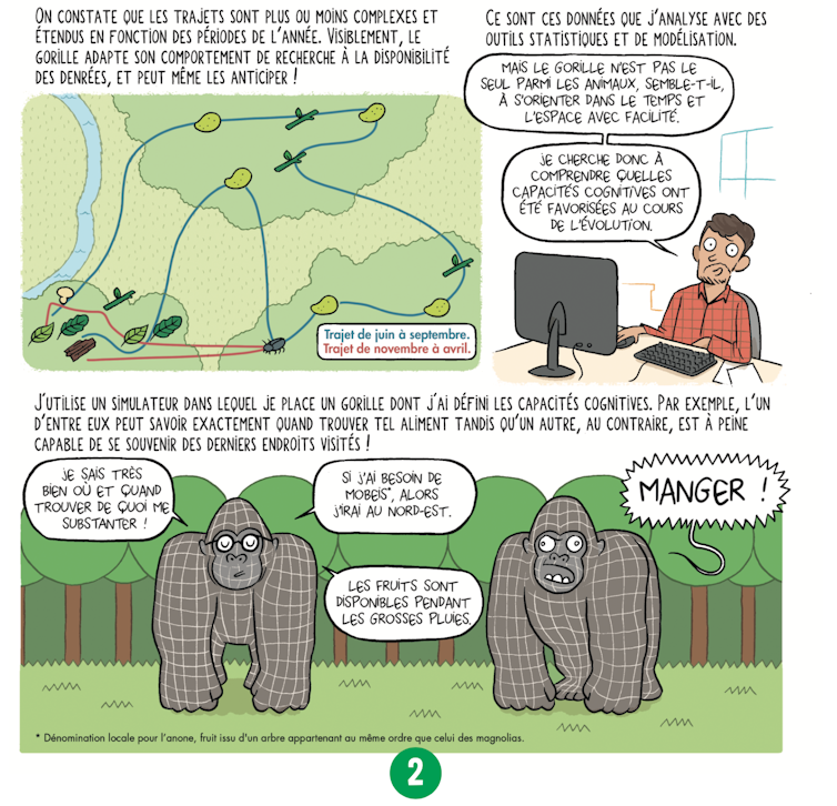 On observe alors que les gorilles ciblent certains endroits précisément quand les ressources y sont disponibles, et s’y déplacent linéairement et rapidement. La prochaine étape consiste alors à comprendre quelle forme prend ce savoir spatio-temporel : les gorilles ont-ils une carte mentale des ressources ? Et ont-ils en tête un calendrier précis de la disponibilité de chacune ?