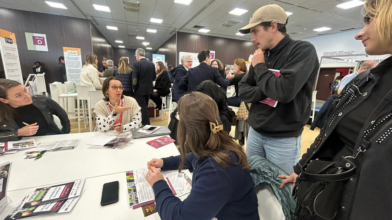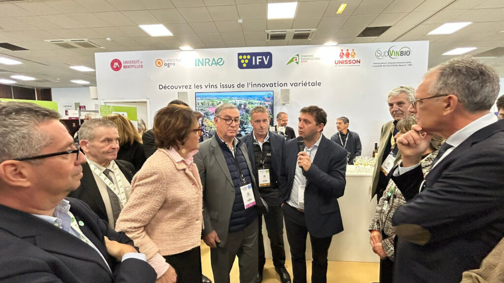 Une évidence également pour les quelques 150 visiteurs venus à leur rencontre sur le stand « Ensemble pour des vignobles d’avenir » que l’UM animait avec l’Inrae, et l’Institut Agro (membres du PUI), mais aussi l’IFV, SudVinBio, la Chambre d’Agriculture d’Occitanie et Unisson. Sept acteurs et partenaires de la R&D, de l’innovation et de la formation – avec les équipes pédagogiques du diplôme national d’œnologie et du CFA EnsupLR – réunis pour répondre aux questions des étudiantes et étudiants, fournisseurs, producteurs, scientifiques et des collectivités… Et même de la ministre de l’Agriculture, Annie Genevard très intéressée par les forces vives du PUI.