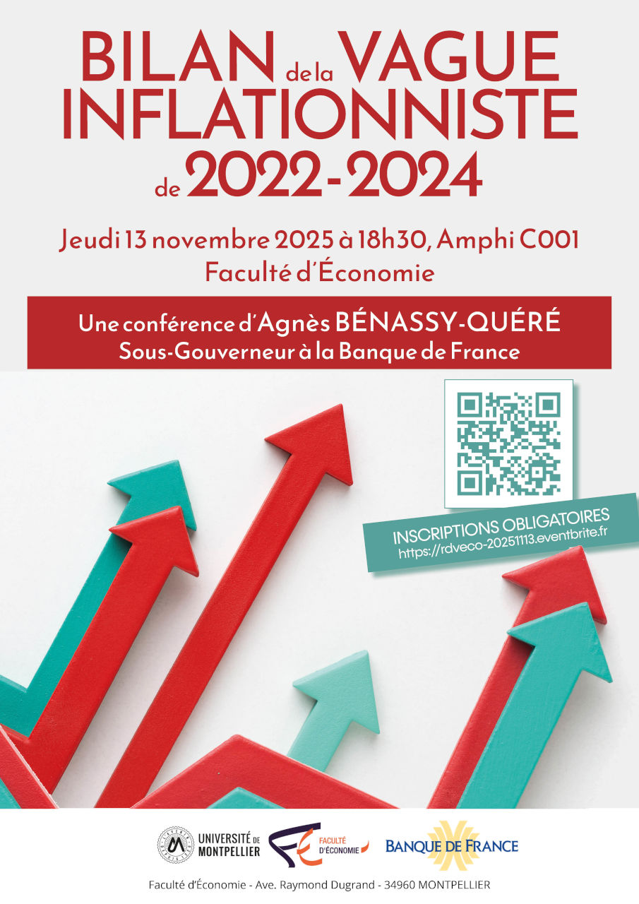 Dans le cadre des « rendez-vous de l’éco », la Faculté d’économie de l’Université de Montpellier organise, une conférence sur le thème : « bilan de la vague inflationniste de 2022-2024 » le jeudi 13 novembre à partir de 18h30, sur le Campus Richter à la Faculté d’économie.