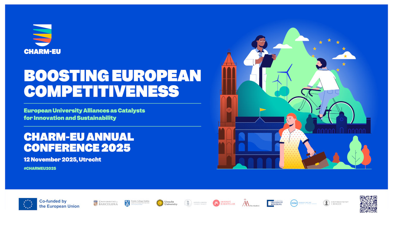 European competitiveness is the major theme of the 2025 edition of the annual Charm-EU conference. Entitled "Strengthening European Competitiveness: European University Alliances as Catalysts for Innovation and Sustainability", the event is organized on November 12 by Utrecht University (Netherlands), one of the nine member universities of the prestigious European University Alliance. On the program: inspiring plenary sessions (also to be followed on the Charm-EU YouTube channel) and impactful workshops.