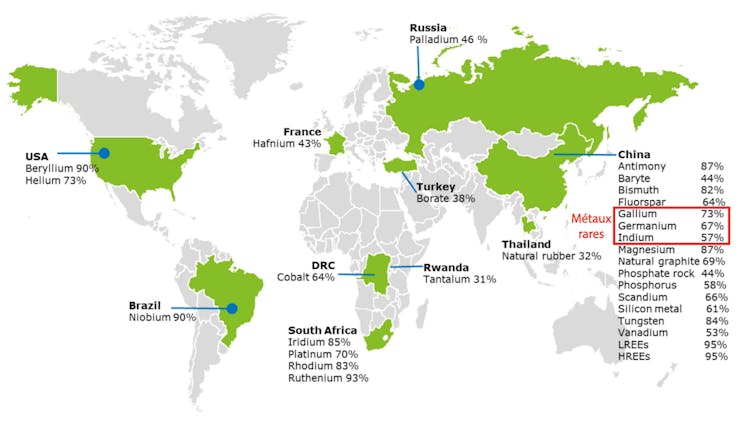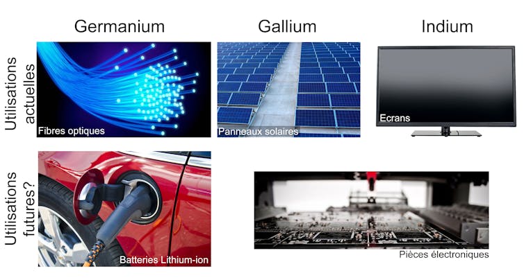 Among these critical metals, elements from the "rare earth" group, as well as lithium and cobalt, are essential to new automotive and computer technologies. Tungsten is invaluable in certain aerospace alloys. Rare metals such as gallium, germanium and indium are essential to the manufacture of fiber optics, solar panels and electronic systems, and could improve the performance of lithium-ion batteries. The latter are extracted mainly as a by-product of zinc sulfide, in which they are diluted.