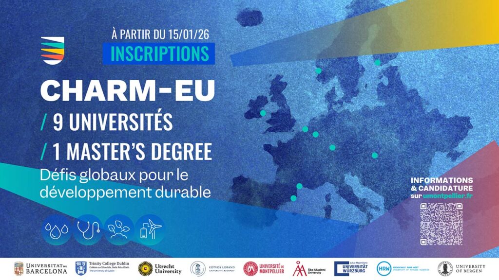 Since January 15, applications have been open for the Master's degree in Global Challenges for Sustainable Development. Not only at the University of Montpellier, but also at all the other universities that make up the Charm-EU alliance. That's nine universities located in eight European countries, separated by hundreds or even thousands of kilometers, but linked by a common desire to help build the European education and research area of tomorrow.