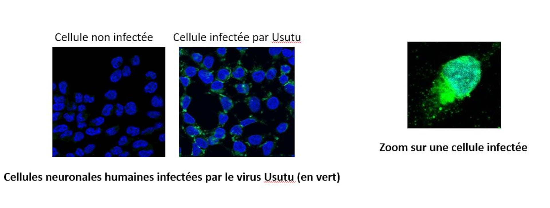 Little is known about Usutu's target cells. Nevertheless, our team recently described its ability, like other flaviviruses, to infect nervous system cells in vitro (in the laboratory).